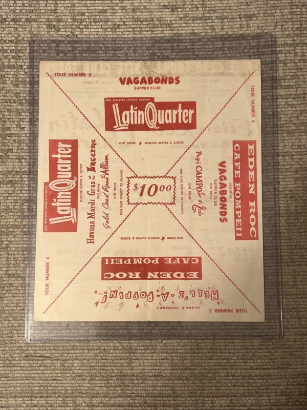 The advertisement features Joe DiMaggio's signature and is an original piece. It is a great addition to any sports memorabilia collection, especially for fans of the New York Yankees. Don't miss out on this unique opportunity to own a piece of sports history. Very cool and unique piece of sports memorabilia and Miami night life history here.